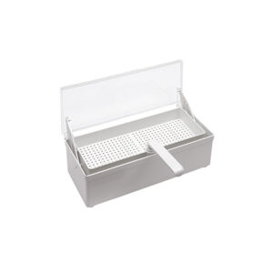 Contenitore in ABS per disinfezione strumenti. Dimensioni: 26x11 h8. Capacità 1,25lt. Colore: Bianco...