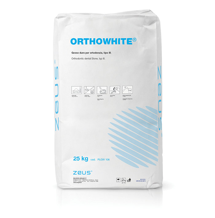 ORTHOWHITE è un gesso duro di ottima qualità, indicato per ortodonzia, particolarmente fine e di colore bianco brillante. La consistenza cremosa garantisce un’ottima scorrevolezza ed una esatta riproduzione dei dettagli, realizzando modelli con superfici estremamente lisce ed omogenee. La particolare durezza evita distorsioni del modello nella lavorazione con resine acriliche, sia nella polimerizzazione a caldo che a freddo. Compatibile con tutti i materiali da impronta.