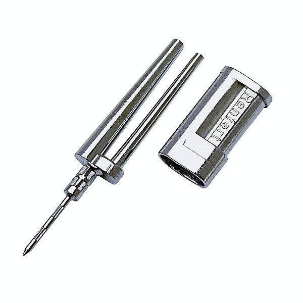 Perno per modelli nichelato a specchio con guida doppia. Uno spillo speciale per il fissaggio nell’impronta riduce notevolmente il tempo necessario a confezionare il modello.