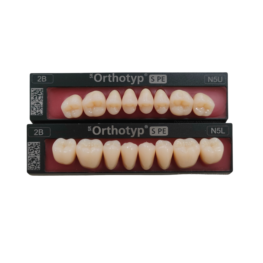 Denti realizzati interamente in resina DCL (Double Cross Linked) altamente reticolata. Disponibili in 16 forme superiori ed 8 forme inferiori.