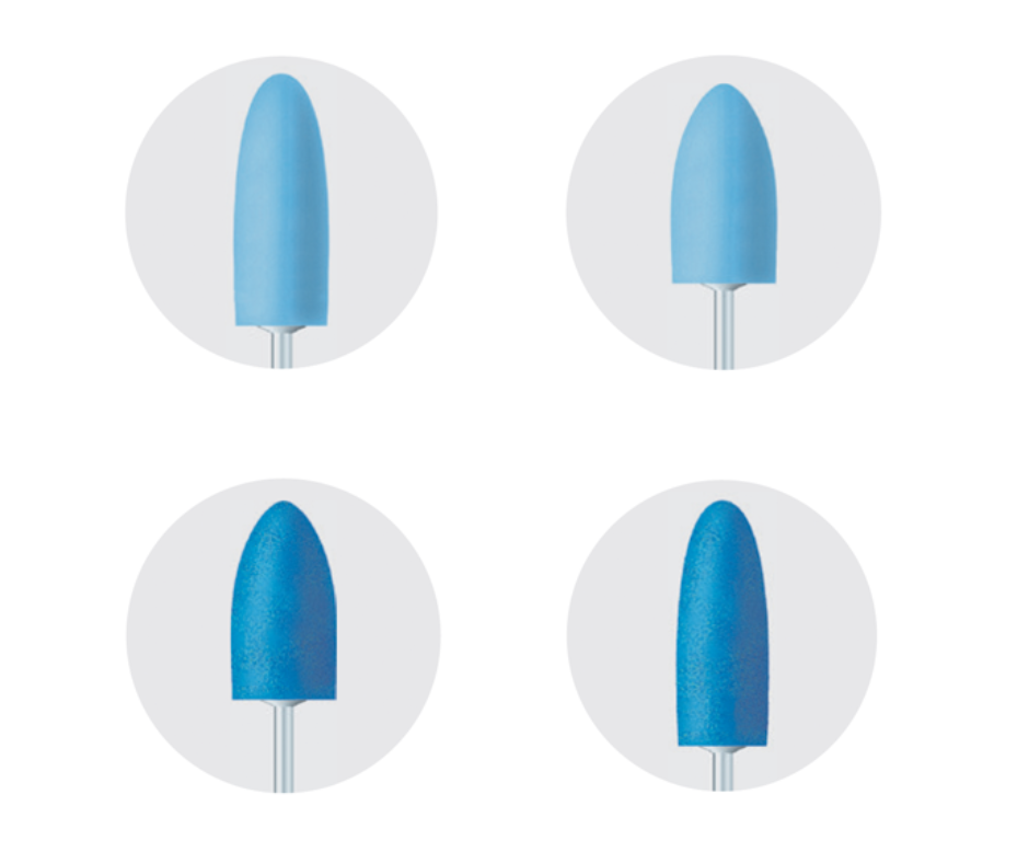 Peroni siliconici montati indispensabili a rifinire e lucidare le resine acriliche.
