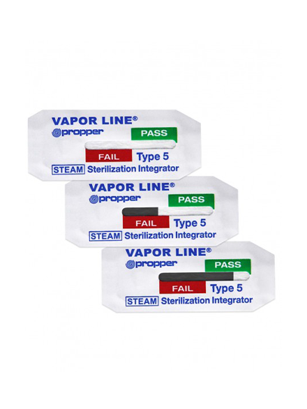 Vapor Line è un integratore chimico multiparametrico a barra migrante di classe 5, indicato per il monitoraggio dei cicli di sterilizzazione a vapore saturo compresi tra 121°C e 134°C. È utilizzabile in autoclavi con cicli di tipo B, N e S, sia a gravità sia a pre-vuoto.
