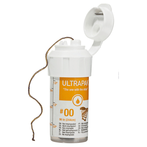 Ultrapak viene tessuto in modo da formare una maglia concatenata, costituita da migliaia di piccole anse che rendono agevole la zeppatura sotto il margine gengivale.