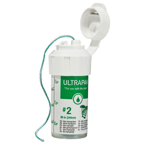 Ultrapak viene tessuto in modo da formare una maglia concatenata, costituita da migliaia di piccole anse che rendono agevole la zeppatura sotto il margine gengivale.