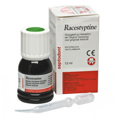 Racestyptine Soluzione permette di ottenere una retrazione del tessuto gengivale, rapida, temporanea ed assolutamente reversibile. Compatibile con tutti i fili retrattori impregnati di Cloruro di Alluminio o non impregnati.