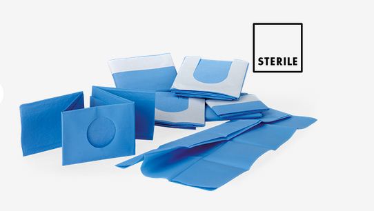 Teli chirurgici sterili in TNT biaccoppiato. Misura: cm. 50×50. Confezionati singolarmente in buste, in carta medicale e polietilene. Dispositivo Medico di Classe I sterile. Colore: Azzurro.