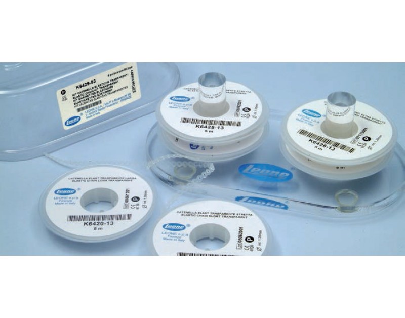 Catenelle elastiche LEONE utilizzate per legare l’arco sull’attacco con contemporanea trazione per la chiusura o la stabilizzazione di spazi tra 2 gruppi di denti. Diametro Interno 1,3mm. Disponibili grigie o trasparenti.