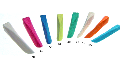 Cunei interdentali in legno d’acero ad adattamento anatomico, con superfici concave, estremità rettangolare e punta piegata per un inserimento sicuro e stabile. Antischeggia e disponibili in varie misure e colori.