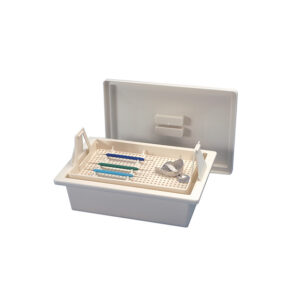 Contenitore in ABS per disinfezione strumenti. Dimensioni: 26x11 h8. Capacità 1,25lt. Colore: Bianco...